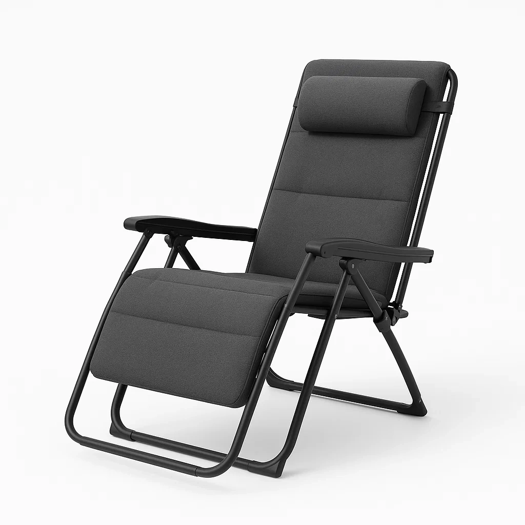 Silla reclinable plegable de acero y tela gris 165x65x110 cm